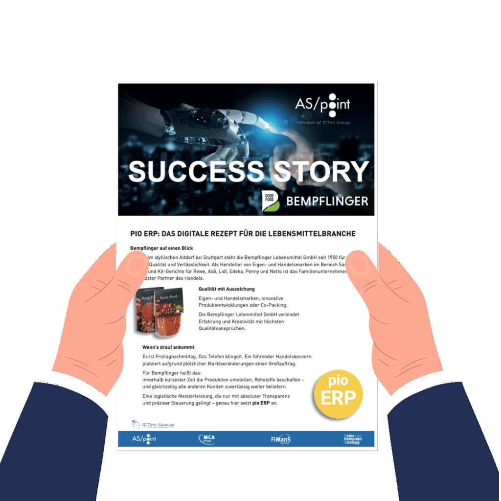 Mit pio ERP bietet AS/point eine speziell auf die Lebensmittelindustrie zugeschnittene ERP-Lösung, die Unternehmen dabei unterstützt, gesetzliche Anforderungen wie Rückverfolgbarkeit gemäß EU-Verordnungen (z. B. EU VO 178/2002, EU VO 1830/2003) einzuhalten und gleichzeitig die Effizienz in Produktion, Logistik und Vertrieb zu steigern. Die Software ermöglicht eine lückenlose Chargenverfolgung, optimiert Materialbestellungen und gewährleistet hundertprozentige Liefertreue. Dank ihrer Skalierbarkeit eignet sich pio ERP sowohl für kleine Fertigungsbetriebe als auch für komplexe Anlagen mit mehreren Hundert Einheiten. Mit integrierten Modulen für Business Intelligence, CRM und Produktionsplanung bietet pio ERP eine ganzheitliche Steuerung aller Unternehmensprozesse und unterstützt Unternehmen dabei, ihre Wettbewerbsfähigkeit in der Lebensmittelbranche zu sichern.